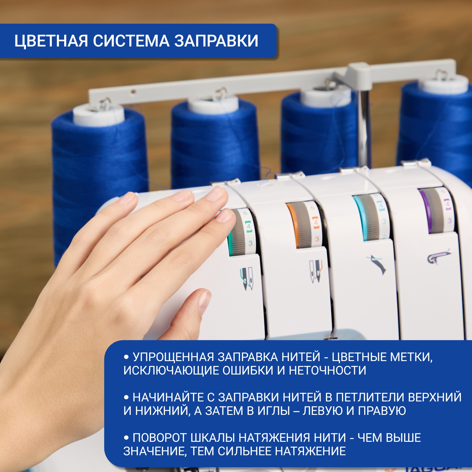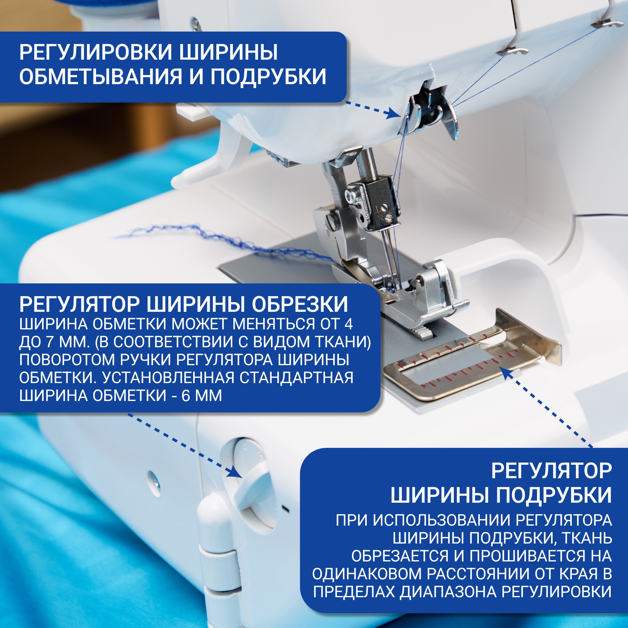 Также хорошо справляется с тонкими и трикотажными тканями.