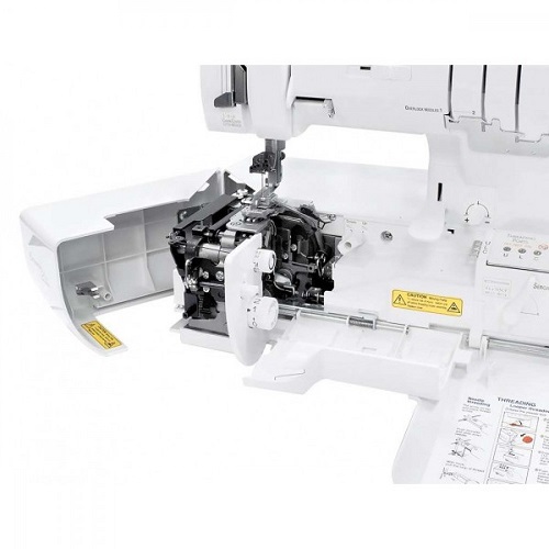 Машина выполняет особый волнообразный стежок для эффектной отделки края модели. Коверлок оборудован светодиодной подсветкой, коленоподъёмником и мусоросборником, а также регулятором скорости на корпусе.