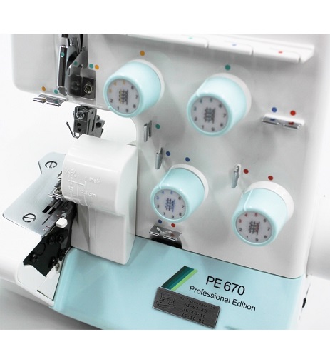 Оверлок Juki PE 670 – отличный выбор как для новичков, так и для продвинутых любителей шитья. Оверлок легко заправить, благодаря цветной схеме на корпусе. Он снабжен дифференциальным транспортером. Справляется со всеми типами тканей.