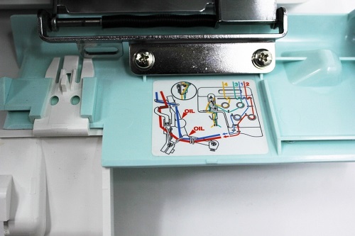 Отзывы покупателей говорят о том что, дифференциальная подача помогает получить качественную строчку на эластичных материалах. Вы сможете менять силу давления лапки, работая с тканями разной толщины. Модель имеет встроенную подсветку рабочей области. Максимальная скорость шитья – 1500ст/мин.