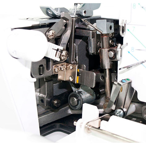 Оверлок выполняет узкие и широкие швы, а лишняя ткань припусков обрезается специальным ножом. Усовершенствованное светодиодное освещение обеспечивает яркую подсветку рабочей зоны оверлока и не требует замены лампочки. Поднимаемая вверх стойка с отверстиями для направления нитей поможет избежать запутывания. Используйте специальный регулятор, чтобы изменить силу давления прижимной лапки. Корпус оверлока может быть преобразован в цилиндрическую рукавную платформу.