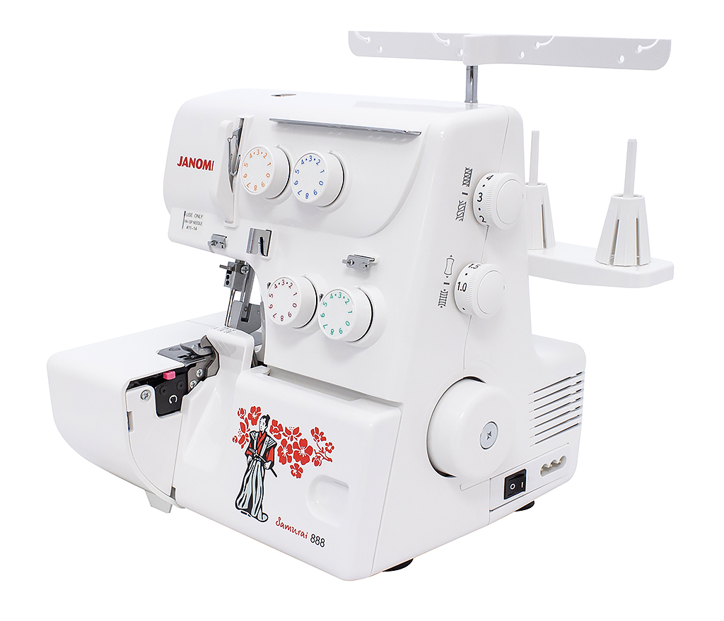 Оверлок Janome Samurai 888 может выполнять все самые необходимые виды швов с использованием 3-х или 4-х нитей. Уникальный дизайн этой модели с принтом в виде самурая и цветущей сакуры напоминает о родине компании Janome - Японии. Данная модель оверлока отличается внешней заправкой нитей. Имеет высокую мощность, что положительно влияет на скорость шитья и позволяет справляться с большинством видов тканей.