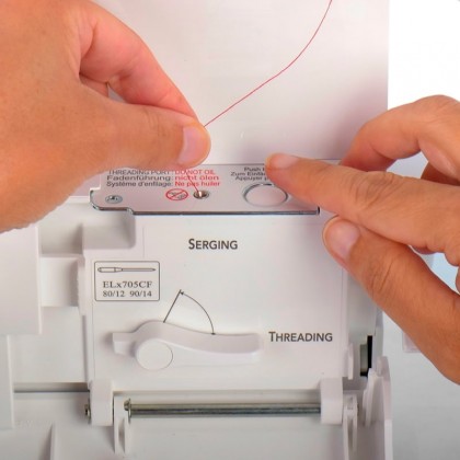 Чтобы провести нить через петлитель при помощи системы ExtraordinAir®, достаточно одного нажатия на кнопку!