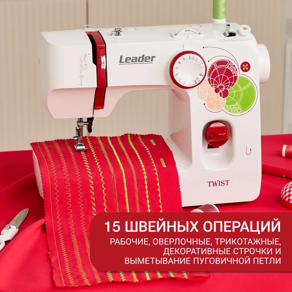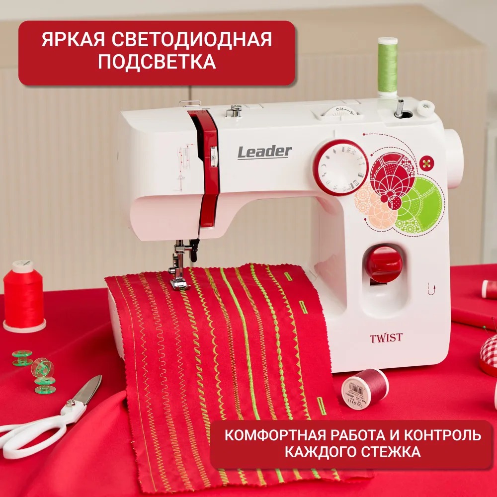 Удобная и простая в обращении электромеханическая швейная машина Leader TWIST с классическим вертикальным челноком. Её оценят и полюбят не только начинающие портнихи, но и опытные швеи.