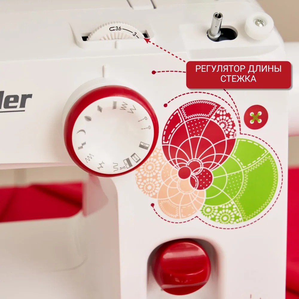 Электромеханическая швейная машина Leader TWIST прекрасная помощница в доме и на даче. В машине есть ручка для транспортировки.