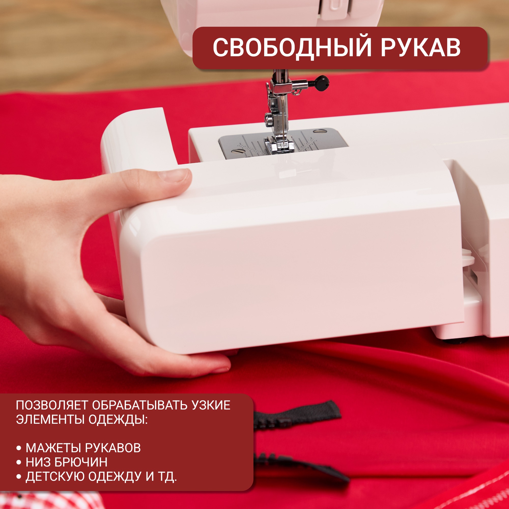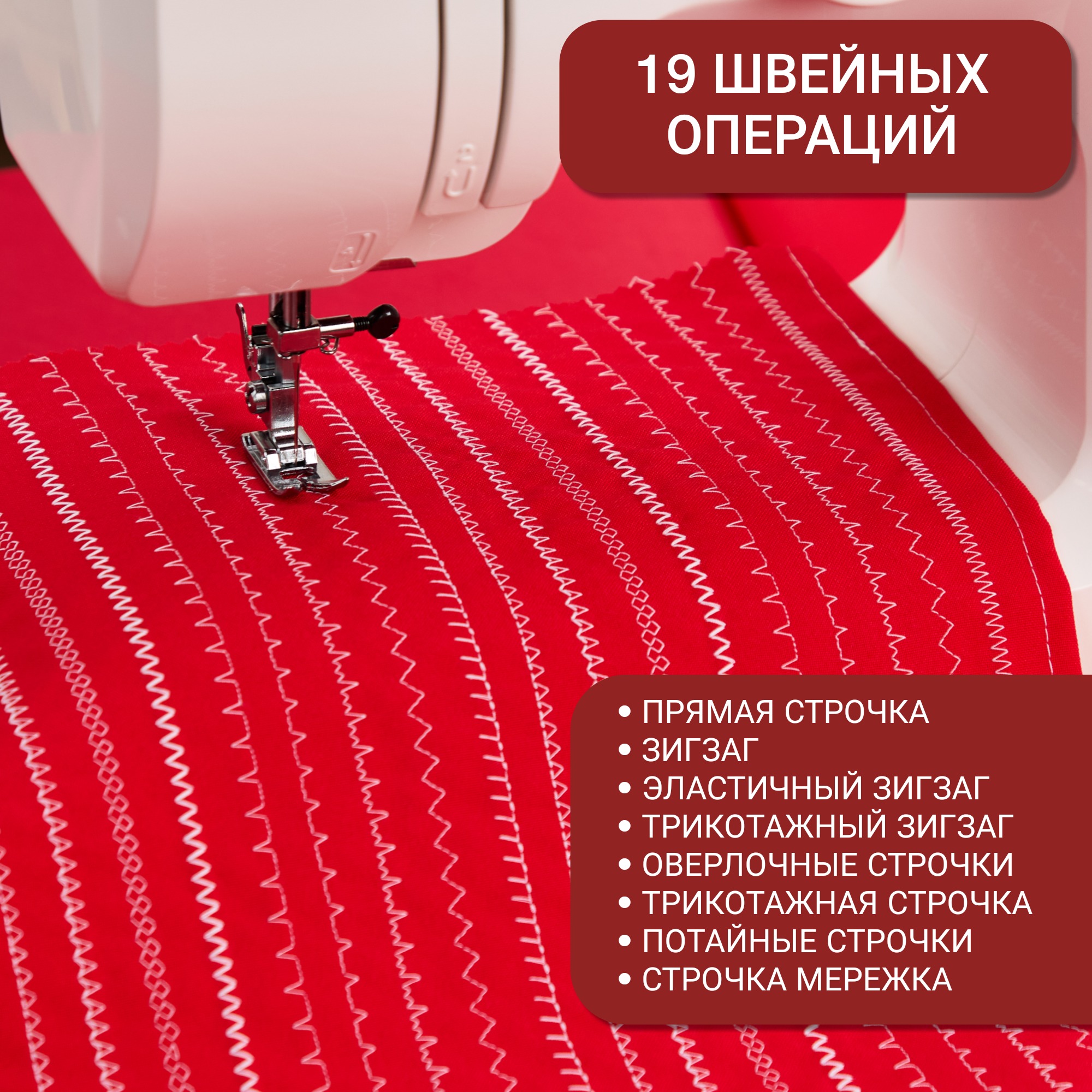 Скорость шитья регулируется педалью