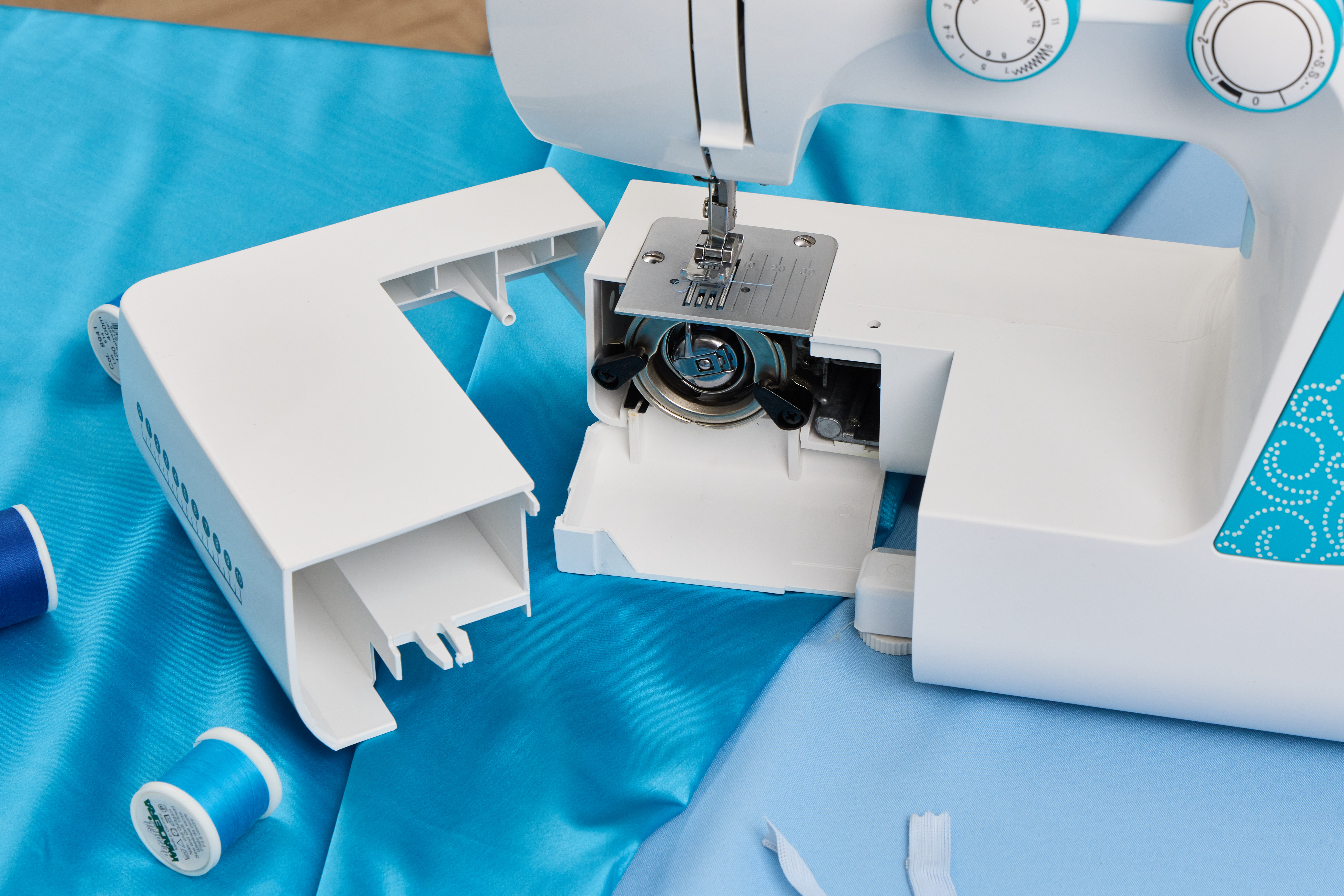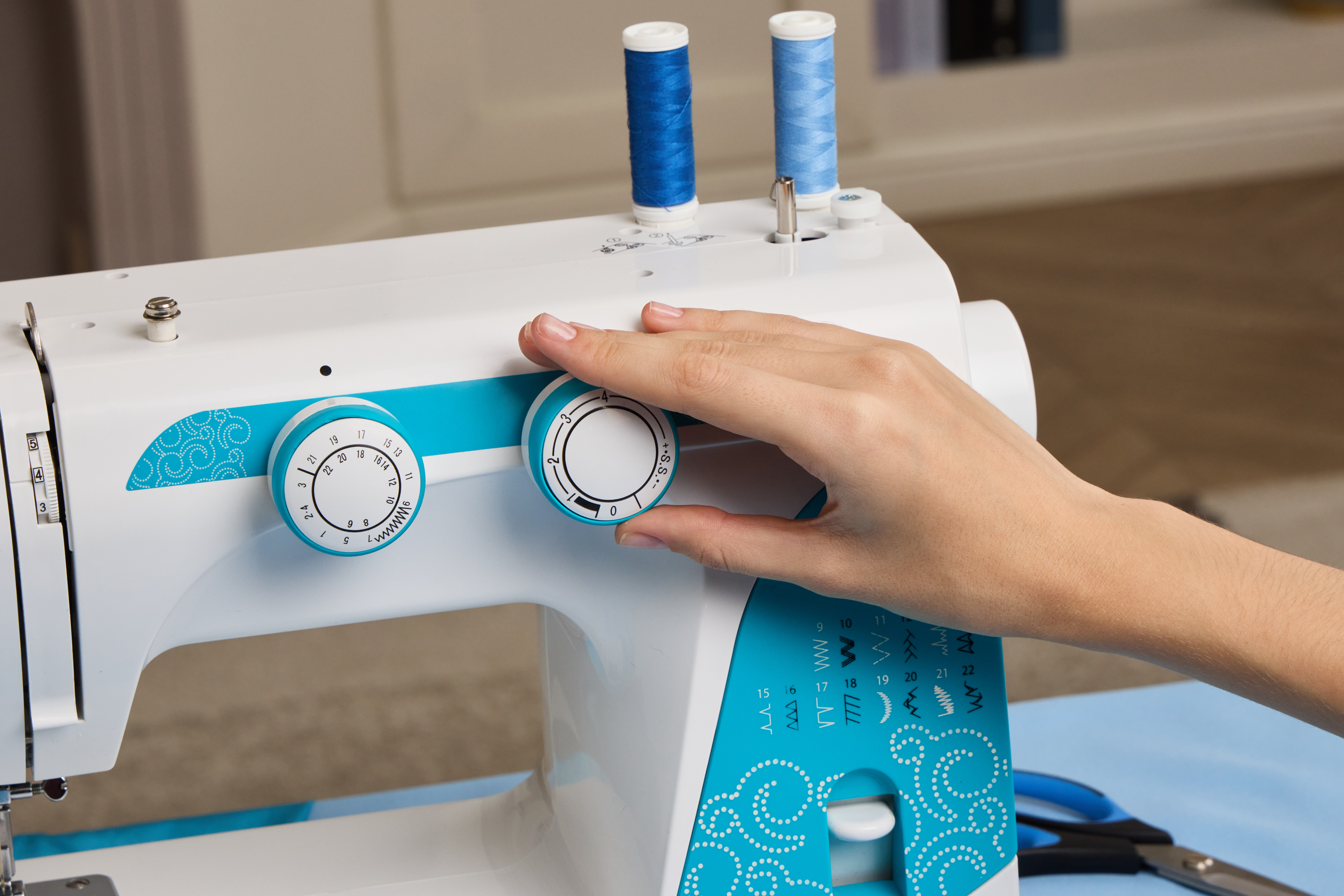 В машине предусмотрены прямые строчки с центральным и левым положением иглы. Можно пришить аппликацию, шить трикотажные изделия, а также выполнять строчки двойной иглой. Для этого необходимо приобрести двойную иглу с расстоянием между иглами не больше 2,5 мм и симметрично заправить машину двумя катушками нитей. Для шитья мелких деталей кроя, таких как манжеты, брючины удобно шить на свободном рукаве, для этого надо снять съёмный столик.