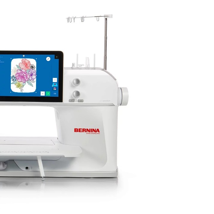 Машина оснащена увеличенным рабочим пространством до 356 мм справа от иглы, сканером позиционирования и встроенной камерой BERNINA Pinpoint для точного размещения рисунков.