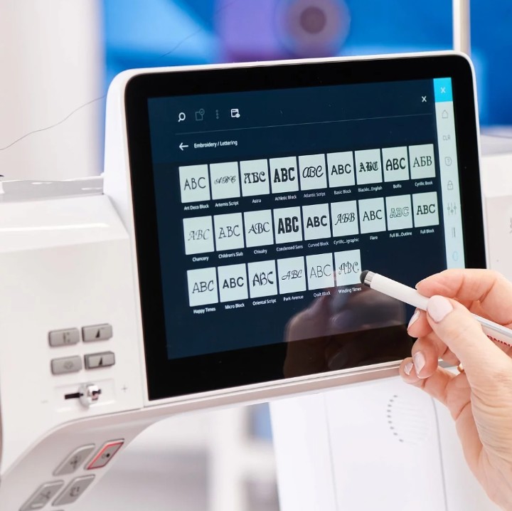 Высокотехнологичная швейно-вышивальная машина с цветным 10-дюймовым сенсорным экраном и управлением жестами.