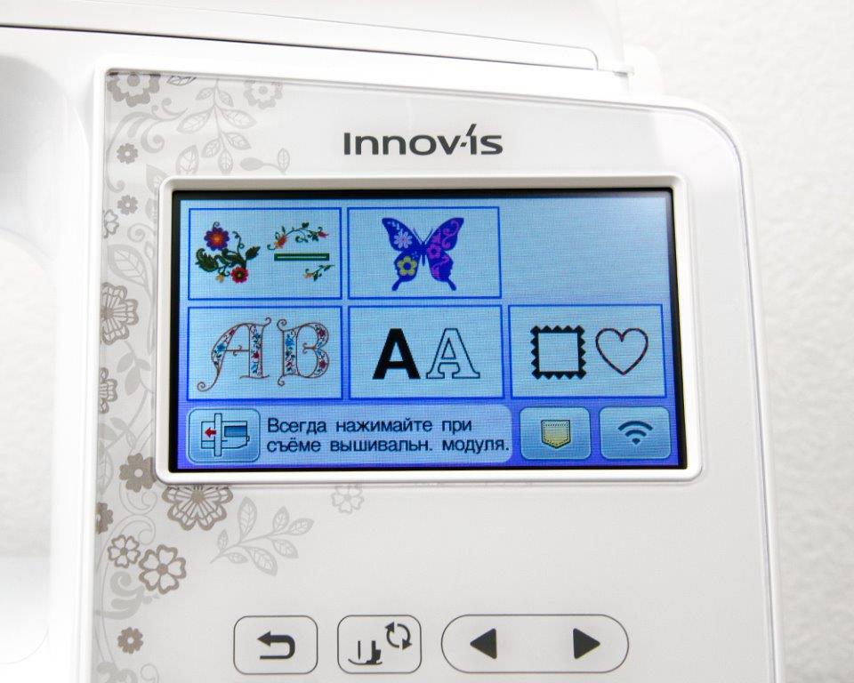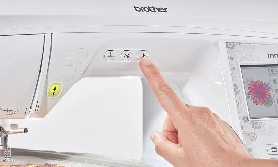 Машина оснащена удобными функциями, многие из которых доступны с помощью центральных функциональных клавиш и цветного 4,9-дюймового сенсорного экрана. Вы можете настроить машину на автоматическое опускание прижимной лапки и начало вышивания при нажатии кнопки старт/стоп.